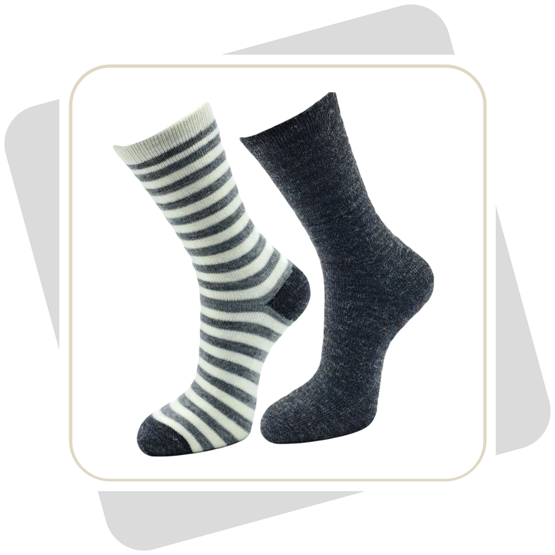 Damen Wollsocken mit Alpaka Ringel, dünne Qualität / 2 Paar
